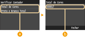 Você pode verificar os totais separados para o número de páginas usadas para impressos coloridos e em branco e preto. Estes totais incluem faxes relatórios e listas além de cópias e impressos de dados do computador.