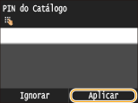 Se um PIN tiver sido definido para o Catálogo de endereços, a tela <PIN do Catálogo> aparecerá durante a exportação. Digite o PIN do Catálogo de endereços e toque em <Aplicar>. Toque em <Ignorar> para cancelar a exportação dos dados do Catálogo de endereços.