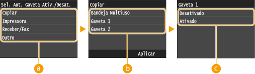 Asteriscos (*)Configurações marcadas com "*1" somente ficam disponíveis quando a gaveta de papel opcional (gaveta 2) está conectada.