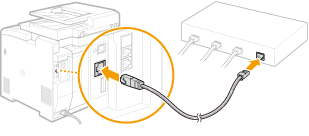 Conecte a máquina a um computador através de um roteador. Use um cabo LAN para conectar a máquina ao roteador.