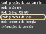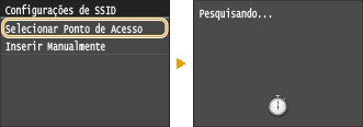 Se a conexão sem fio for configurada selecionando um roteador sem fio, o método de autenticação WEP é definido para <Abrir Sistema> ou o método de criptografia WPA/WPA2 é definido para <Automático>(AES-CCMP ou TKIP). Se você deseja selecionar <Chave Compartilhada> para a autenticação WEP ou <AES-CCMP> para a criptografia WPA/WPA2, você precisa configurar a conexão usando o método de entrada manual ( Configurando a conexão especificando definições detalhadas).