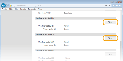 Clique em [Editar] em [Configurações de LPD] ou [Configurações de RAW].