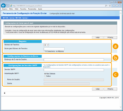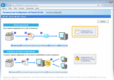 Definições mais detalhadas podem ser especificadas usando a IU remota ao invés da Ferramenta de definição da função de envio (Configurando as definições de comunicação de e-mail/I-Fax). A ferramenta de definição da função enviar é útil para os usuários que desejam concluir a configuração de forma fácil.