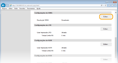 Se o endereço IP do servidor WINS for obtido de um servidor DHCP, o endereço IP obtido sobrescreve o endereço IP inserido na caixa de texto [Endereço do Servidor WINS].