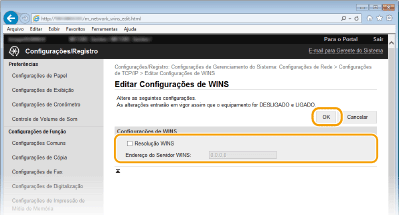 Marque a caixa de seleção [Resolução WINS], especifique as definições necessárias e clique em [OK].