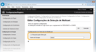 Marque a caixa de seleção para configurar a máquina para responder aos pacotes de descoberta multicast e para ativar o monitoramento pelo software de gerenciamento de dispositivo. [Nome do Escopo]