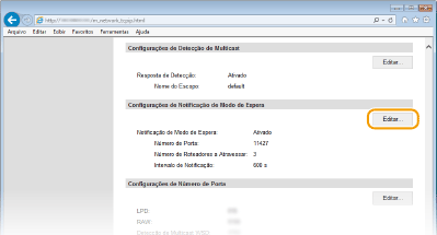 Clique em [Editar] em [Configurações de Notificação de Modo de Espera].