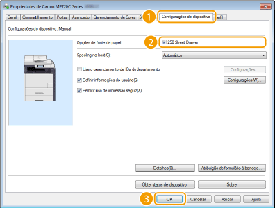 Se você estiver usando MF729Cdw, você pode usar os drivers de impressora PCL5c e PCL6, assim como o driver de impressora UFRII LT. As configurações de impressão disponíveis variam dependendo do driver de impressora. Para mais informações, clique em [Ajuda] em cada tela de driver de impressora.