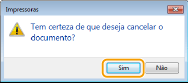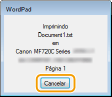 Cancelando a partir de um aplicativoEm alguns aplicativos, uma tela como a mostrada abaixo é exibida. Você pode cancelar a impressão clicando em [Cancelar].