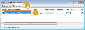 Selecione o documento na tela <Status Trabalho Cópia/Impr.>