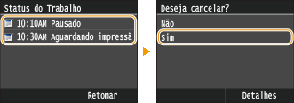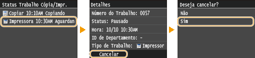Cancelando da IU remotaVocê pode cancelar a impressão a partir da página [Status do Trabalho] na IU remota: Verificando o status atual dos documentos impressos