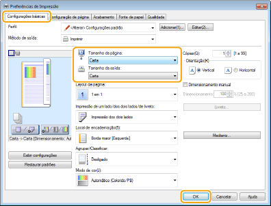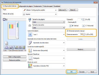 As configurações de ampliação/redução em alguns aplicativos possuem prioridade sobre as configurações do driver de impressora.