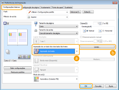Selecione [Impressão de livreto] ou [Impressão de um lado/dos dois lados/de livreto]