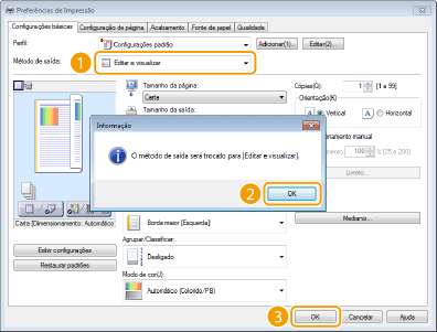 Selecione [Editar e visualizar] no [Método de saída].