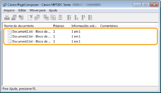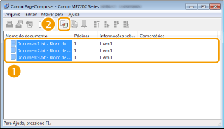 Os documentos são adicionados ao Canon PageComposer.