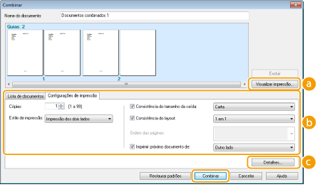 Altere as configurações conforme o necessário e clique em [Combinar].