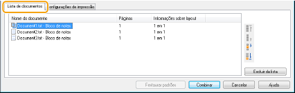 [Lista de documentos]/[Configurações de impressão]