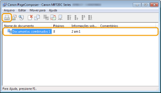 Usando o Canon PageComposer, você pode combinar múltiplos documentos em um trabalho de impressão e imprimi-lo com as configurações de impressão especificadas. Esta função, por exemplo, permite-lhe combinar documentos feitos em diferentes aplicativos e imprimir todas as páginas no mesmo tamanho de papel.