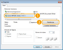 Selecione o driver de impressora para a máquina e clique em [Preferências] ou [Propriedades].