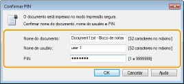 Digite o [Nome do documento], o [Nome de usuário] e o [PIN] e clique em [OK].