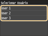 Se documentos protegidos de dois ou mais usuários estão sendo mantidos na memória, a tela <Selecionar Usuário> é exibida antes da tela <Selecionar Arquivo>. Selecione seu nome de usuário.