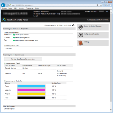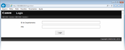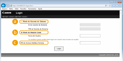 Você pode realizar todas as configurações e operações da IU remota. Insira o ID adequado em [ID do Gerente do Sistema] e o PIN em [PIN do Gerente do Sistema] (