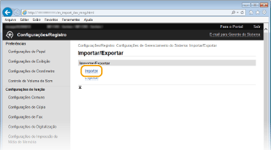 Carregue (importe) os dados que foram exportados da máquina. Você pode também importar as configurações de uma outra máquina se ela for do mesmo modelo da sua.