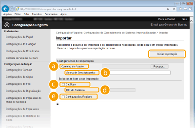A importação do Catálogo de endereços sobrescreverá as entradas do Catálogo de endereços que estão atualmente registradas na máquina.