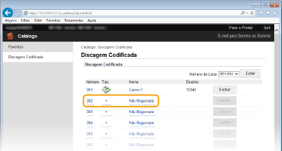 Você pode editar um item registrado clicando no link de texto correspondente sob [Número], [Tipo] ou [Nome].
