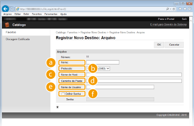 Para armazenar o endereço da pasta compartilhada ou do servidor FTP, selecione [Arquivo].