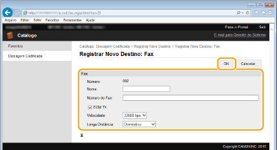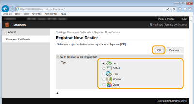 Selecione [Tipo de Destino a ser Registrado] e clique em [OK].