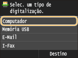 A sequência de "digitalizar um documento e salvá-lo para um computador" somente pode ser feita ao digitalizar a partir da máquina. Digitalize especificando que documentos do computador serão salvos; se deve-se digitalizar documentos em cores ou em preto e branco; se deve-se salvar documentos em formato PDF ou JPEG; e outras configurações.
