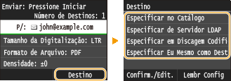 Para instruções sobre como usar o Catálogo de endereços, consulte Especificando no Catálogo de endereços