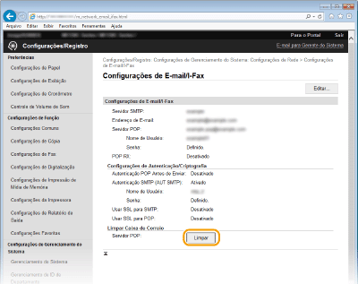 Clique em [Limpar] em [Limpar Caixa de Correio].