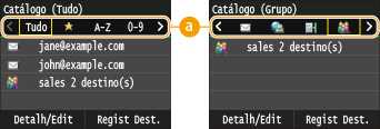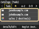 O Catálogo de endereços permite-lhe especificar um destino selecionando de uma lista de destinos registrados ou procurando por o nome de destinos com nomes de destinatários.
