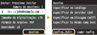 Se você deseja excluir destinos fácil e rapidamente sem exibir uma lista de destinosAntes de selecionar <Confirm./Edit.> na etapa 1, você pode tocar em