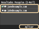 Se a tela de autenticação aparecer quando você tocar em <Iniciar Pesq.>, insira o nome do usuário da máquina e a senha registrada no servidor LDAP e toque em <Aplicar>.