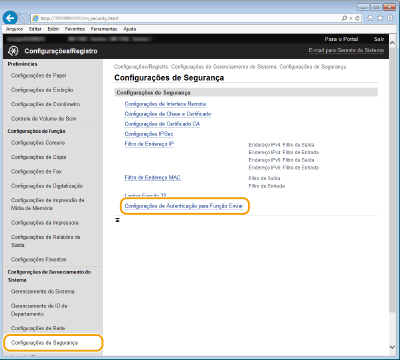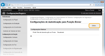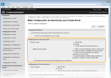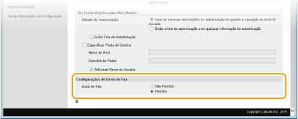 Quando a opção [Permitir] está especificada em [Envio de Arquivo]