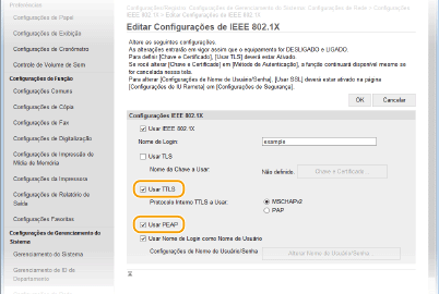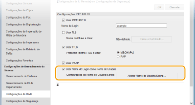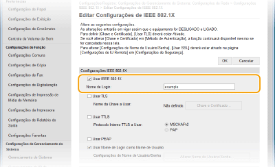 Selecione a caixa de verificação [Usar IEEE 802.1X], insira o nome do login na caixa de texto [Nome de Login] e especifique as configurações necessárias.