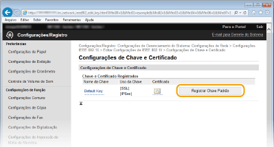 Clique em [Registrar Chave Padrão] à direita do par de chaves que você deseja usar para a autenticação do cliente.