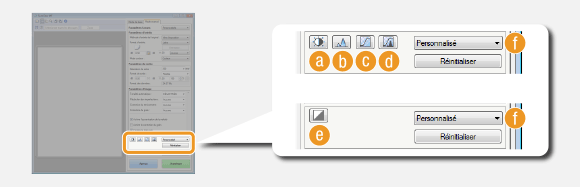 Lorsque vous numérisez les documents à l'aide d'un logiciel de reconnaissance de caractères (OCR) ou d'une autre application, il arrive parfois que l'écran ScanGear MF ne s'affiche pas. En pareil cas, le document est numérisé à l'aide des réglages de l'application. Toutefois, si l'application ne dispose pas des réglages suivants, activez-les dans cet écran de façon à appliquer les présents réglages lors de la numérisation.