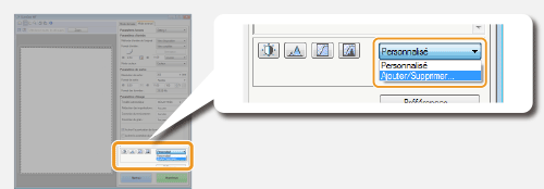 Si vous sélectionnez [Ajouter/Supprimer], vous pouvez ajouter de nouveaux réglages de format de sortie et supprimer les formats ajoutés.