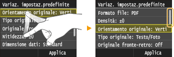 per regolare l'impostazione sulla scala. Un'impostazione può essere regolata anche scorrendo il cursore a sinistra o destra con il dito.
