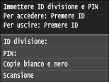 Alla visualizzazione della schermata di accesso, attenersi alla procedura seguente per immettere l'ID reparto e il PIN.