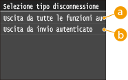 Se si è connessi sia a Invio autorizzato che a Gestione ID reparto, viene visualizzata una finestra di dialogo in cui è possibile selezionare le voci da cui si intende disconnettersi.