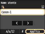 Immettere il nome utente utilizzando i tasti numerici, quindi toccare <Applica>.