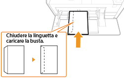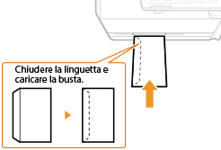 In questa sezione viene descritto come caricare le buste con l'orientamento preferito, oltre alle procedure necessarie da eseguire prima di caricare le buste. Per una descrizione della procedura generale di caricamento buste nel cassetto della carta o nello slot di alimentazione manuale, vedere Caricamento della carta nel cassetto della carta o Caricamento della carta nello slot di alimentazione manuale.
