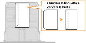 Caricare le buste in modo che il bordo con la linguetta sia rivolto verso il lato sinistro, come indicato nell'illustrazione.