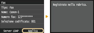 In base al contenuto registrato nel server LDAP, vengono immessi automaticamente nome utente e numero di fax/indirizzo e-mail della destinazione specificata registrata nel server LDAP.