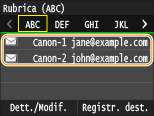 È possibile unire più selezioni in gruppi. È possibile registrare fino a 299 destinazioni (100 destinazioni per le e-mail) per un gruppo. Dopo la registrazione di un gruppo, è possibile aggiungere o eliminare destinazioni.